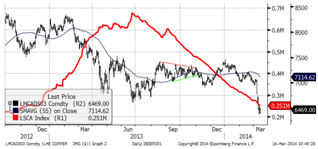 Värt att notera är dock att lagren vid LME fortfarande inte visar några tecken på att stiga utan fortsätter att falla.