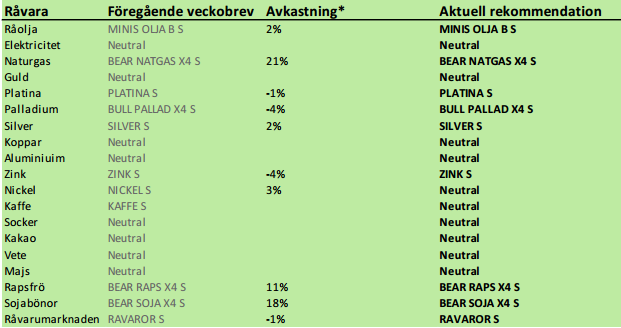 Vi rekommenderar alltså en neutral position i platina och en köpt position i palladium.