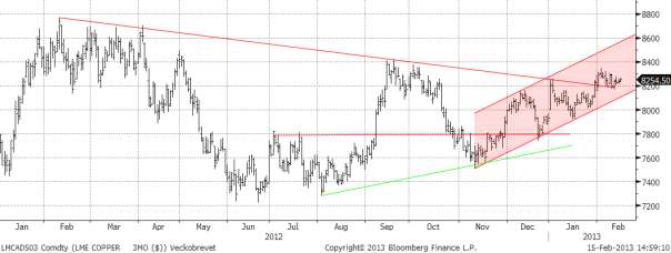 Som vi skrivit tidigare tyder mycket på ökat utbud för koppar, vilket ökar risken för en lite trögare marknad. Vi ser inte den stora potentialen på koppar på uppsidan just nu. Vi rekommenderar därför en fortsatt neutral position i koppar.