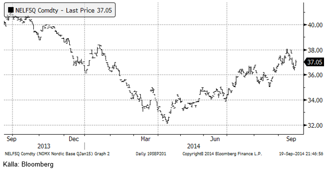 Nedan ser vi terminspriset för kalenderåret 2015 avseende energikol.