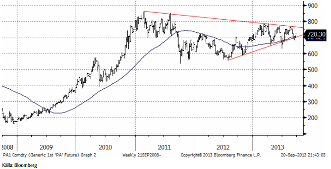Palladiumpriset är tillbaka i den triangelformation vi talat om tidigare.