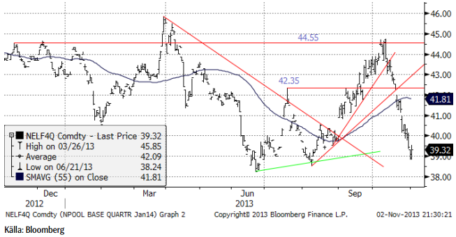 Nedan ser vi prisdiagrammet för det första kvartalet 2014:s kontrakt, uppdaterat till i fredags.