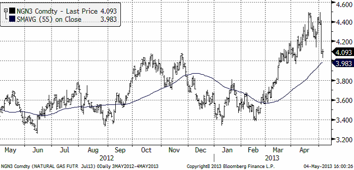 Naturgaspriset fortsatte, som vi skrev förra veckan, upp mot 4.50 igen. Efter det föll priset abrupt. Det var olyckligt, men på den här nivån tror vi att naturgas är köpvärt igen.