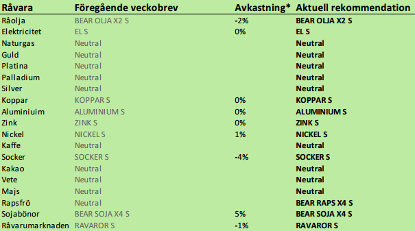 På basis av rapporterna i veckan och för att den tekniska bilden indikerar en nystart av pristrenden nedåt, går vi över till säljrekommendation på raps.