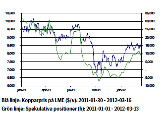 - Oro för utvecklingen i Kina präglar kopparmarknaden igen. I Kina gick premiärminister Wen Jiabao ut med budskapet att fastighetssektorn är övervärderad, framförallt i landets storstäder och att man därför kommer att föra en politik som dämpar marknaden vilket kan innebära mindre ekonomiska stimulanser. Kina och USA är världens två största kopparkonsumenter.