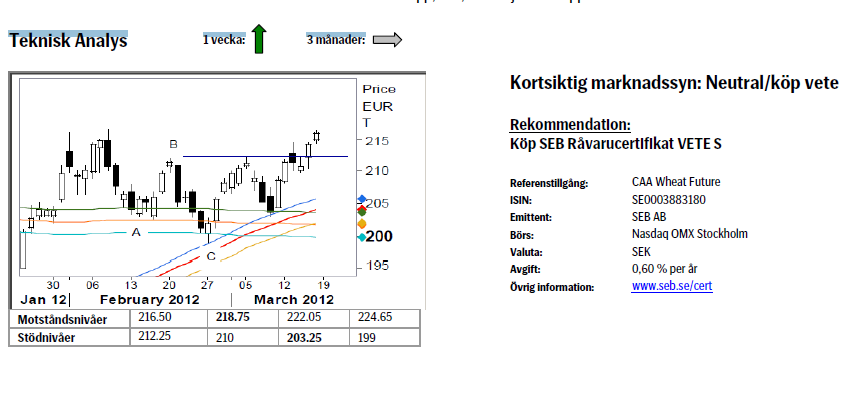 - Teknisk Analys: I och med brottet över B-vågens topp har vi bekräftat att nya toppar är på väg. Ett teoretiskt mål torde återfinnas runt €245. Nuvarande stopp, 199, kan nu justeras upp till 203.25.