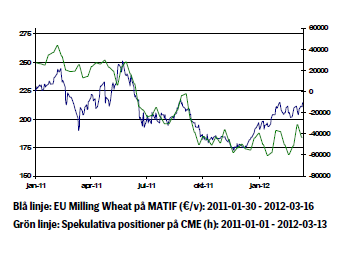 - I samband med att USDA:s jordbruksrapport kom ut förra fredagen blev nog många förvånade när de justerade ned sin prognos på de globala vetelagren för 2012. Detta tryckte förra veckan upp vetepriset i både Chicago och Paris, där det europeiska priset ökade med nästan 2,5 procent.