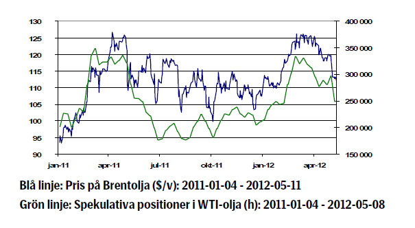 - Det dåliga makroekonomiska sentimentet i takt med att situationen i Europa försämras samtidigt som utbudet av olja i marknaden är stort bidrog till oljeprisets fall. Priset verkar ha stabiliserats vid 112 dollar per fat och vi tycker det är svårt att vara positiva på kort sikt.