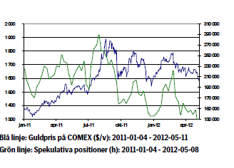 - Guldet föll 3,4 procent och det är uppenbart att guldet inte finner stöd i den systemrisk vi ser i Europa eller i möjligheten till ökad stimulans i form av ökad likviditet. En starkare dollar kan förklara en del av guldets ras men det räcker inte som den enda förklaringen. Vi har sett att utflödet ur guldpositioner skedde i terminsmarknaden medan vi inte såg större utflöden ur fysiska guld ETF: er.