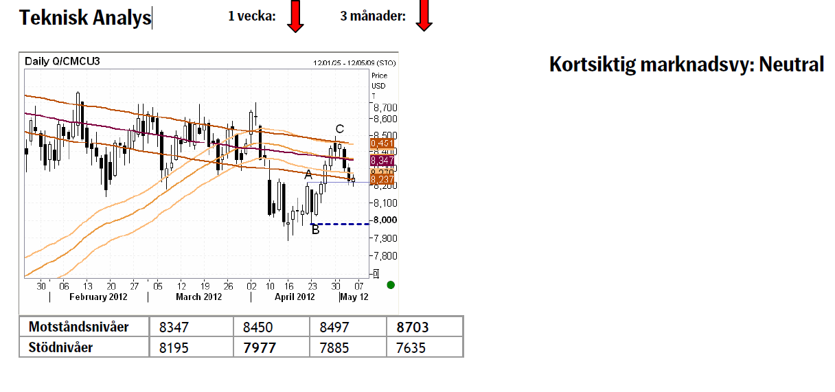 - Kopparpriset kan fortsätta att pressas eftersom hög kinesisk import tidigare gett stöd åt priset men nu uteblir. Samtidigt kan priset stiga om vi ser att Kina behåller all koppar i landet och den globala marknaden uppvisar en minskad tillgång.