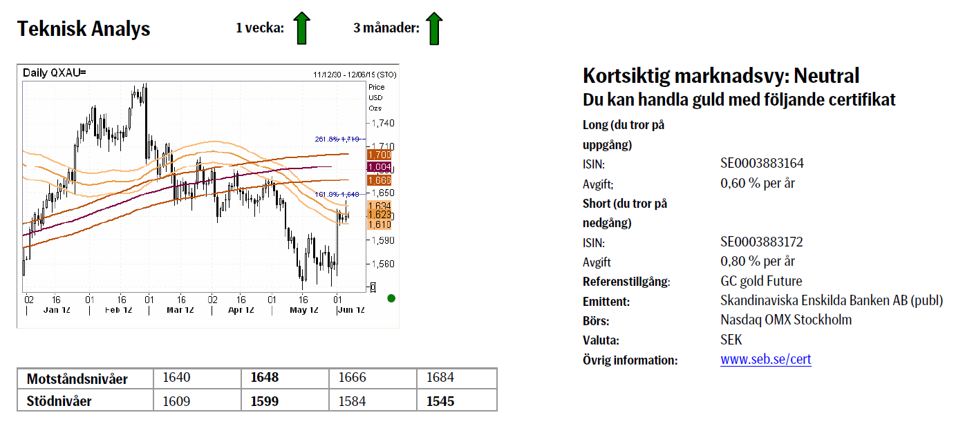Teknisk analys: I en kraftig uppgångsfas. Den större bilden har blivit ytterligare stärkt av den kraftiga uppgång som noterades i förra veckan. Viss respekt visas den över delen av 55- dagars bandet, men en rörelse ner mot 1609/1599 ska ses som korrektiv och ska köpas. En dagsstängning över bandet, nu vid 1634 och brott över en projektionsnivå vid 1648 skulle höja ribban för ett test också in i 233-dagars bandet som just nu börjar vid 1666.