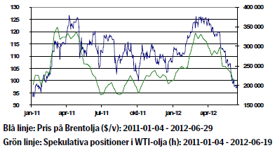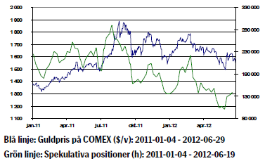 Ser man till hedgefonder och spekulanter är de enligt US Commodity Futures Trading Commission fortsatt försiktigt positionerade för högre priser med 70 715 utstående terminer och optioner i juni jämfört med ett två års genomsnitt på 257 000 kontrakt per månad.