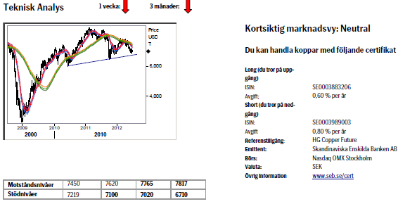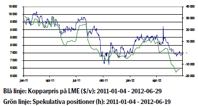 Med en europeisk skuldkris som fortsätter skapa stor osäkerhet och allmänt sett svag makrostatistik med en långsam återhämtning i USA och en inbromsning i Kina är risken stor att kopparpriset ligger kvar på nuvarande nivåer på kort sikt.