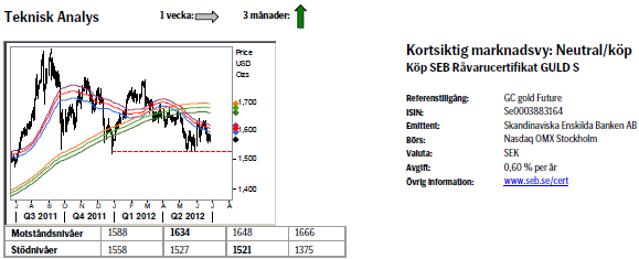 Guldet har backat 0,10 procent under veckan. Vi anser inte att guldrally är troligt men att vi kommer se högre priser på kort sikt.