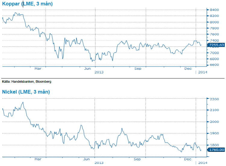 Globalt fortsätter uppgången i början av det nya året. En stark impuls kommer nu till realekonomin från den positiva avslutningen på finansmarknaden under slutet av 2013. De flesta centralbanker är fokuserade på att undanröja riskerna på nedsidan och framförallt deflationsrisker vilket också är positivt för risktillgångar som råvaror.