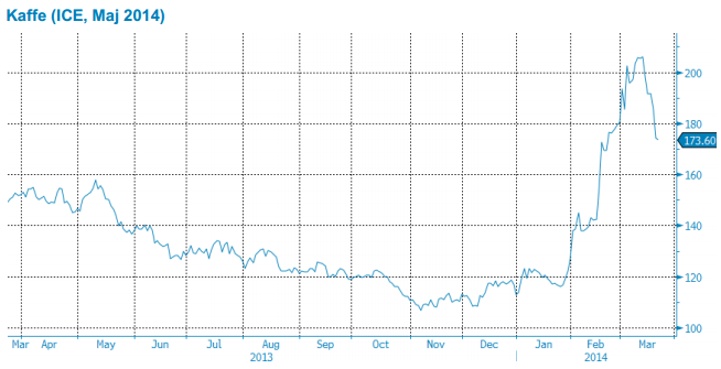 Livsmedel: Kaffe backar efter nederbörd i Brasilien
