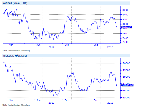 Shanghaibörsen handlades kraftigt ner och värst drabbade var byggbolagen. En våg av negativ spekulation i att detta kommer att minska efterfrågan på de råvaror som används i byggmaterial startade. Basmetaller, järnmalm och stål föll kraftigt under veckan på dessa nyheter och nickel rörde sig som vanligt mest utav basmetallerna. Enbart under torsdagen föll den volatila metallen över 3 % och veckans fall har raderat årets uppgång för basmetallerna. Vi håller kvar vår tro på högre priser på basmetaller och tycker att veckan givit ett bra ”buy on dip” läge.