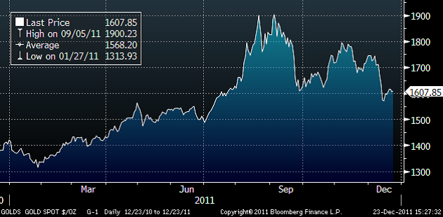 Vi anser att guldpriset för tillfället står inför ett vägskäl. Om priset bryter igenom den tekniskt viktiga nivån på 1500 USD/oz , samtidigt som problematiken i eurozonen ökar, finns det risk för ytterligare prisfall framöver. Om guldpriset istället lyckas hålla sig över 1500 USD/oz, samtidigt som nästa år istället inleds med stigande börser och en starkare euro, finns möjlighet att priset istället stiger.