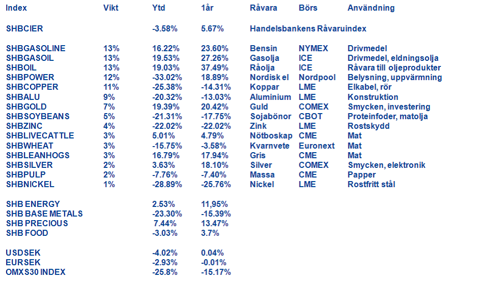 Den första stora nyheten är att Handelsbankens nya sektorindex råvaror lanseras i veckan som kommer!