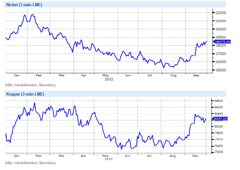 Så var det efter den officiella lanseringen av QE2, och så har det blivit även efter QE3, trots att den har ett ”öppet slut”. De individuella skillnaderna mellan de olika råvarorna börjar växa fram när marknaden inte enbart präglas av ”risk on/ risk off” handel. Mycket riskpremie har pyst ur oljan men ädel- och basmetaller håller emot.