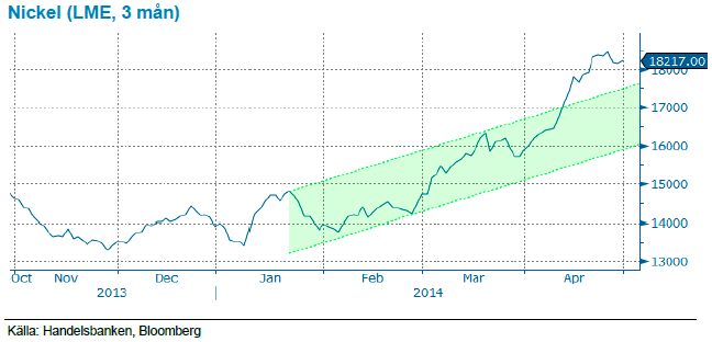 Vi har länge haft nickel som vår favoritmetall då den handlats på låga nivåer där 40 % av gruvorna gick back. Den 1:a april skickade vi ut ett tradingcase där vi intensifierade vår starka tro på stigande nickelpris efter att Indonesiens exportförbud på nickelmalm från den 12e januari såg ut att vara robust samtidigt som den eskalerande krisen mellan Ryssland och Ukraina fick finansmarknaden att handla upp nickel på oror för att Ryssland skulle införa exportrestriktioner på nickel som en kontramanöver på eventuella handelssanktioner från Väst.