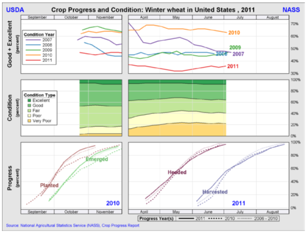 Andelen av grödan som uppgavs vara i skicket ”good/excellent” var 52 procent, upp en procentenhet från föregående vecka. Klart sämre än 66 procent förra året.