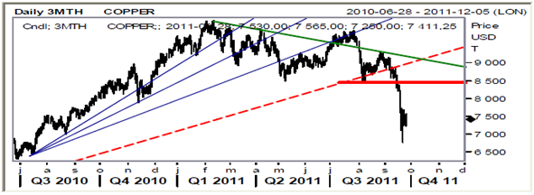 Kopparpriset som förra veckan föll med närmare 12 procent har under veckan stabiliserats kring USD 7,000 dollar per ton. Nedskruvade förväntningar om efterfrågan i kombination med att marknaden bröt igenom viktiga tekniska stöd har varit starkt bidragande till den kraftiga nedgången. En stärkt dollar var också bidragande till nedgången och förväntansbilden om en ytterligare förstärkning i dollarn på 3-6 månaders sikt kommer verka negativt för sentimentet Noterade en artikel där dollarn och fundamentala förändringar tillskrevs någon femtedel (ca 125-150 dollar) vardera av rörelsen och investerare skulle stått för resten. Med det kan man säga vad man vill men det är tydligt att investerarkollektivet skruvat ned förväntningarna. Korta positioner bland icke-kommersiella aktörer har ökat samtidigt som både hedgefonder och index investerare minskat sina långa positioner. Koppar har varit den metall som ansetts vara något övervärderad i nuvarande konjunkturklimat och handlats med en alldeles för hög premie om man ser till produktionskostnaden. Det är därför inte så konstigt att man justerar ned innehavet något i takt med förändrade utsikter. På lång sikt tror jag de flesta är övertygade om att vi går mot en väldigt stram balans till följd av vikande halter och eskalerande kostnader, vilket gör att man kommer sitta kvar på långa positioner och ta tillfället i akt att köpa på sig metaller och Koppar i synnerhet vid just sådana här nedställ.