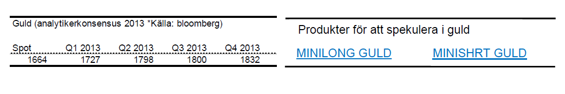 Självklart fungerar det att spekulera i det motsatta. D.v.s. att skillnaden i pris mellan de två råvarorna kommer att öka till gulds fördel. Då kan man istället använda följande produkter.