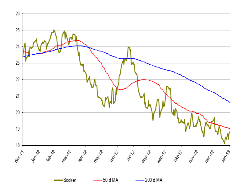 - Socker fortsätter i sin negativa trend. Ned 3 % i januari.