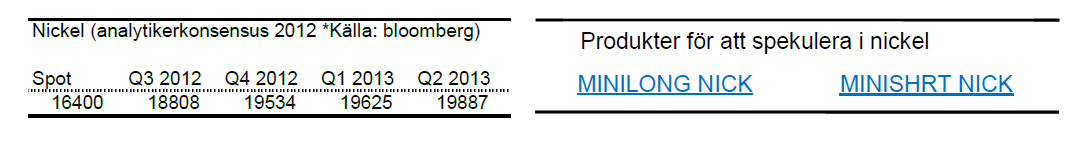 - Nickel fortsätter sin kräftgång under 2012 är för året ned nästan 13 %.
