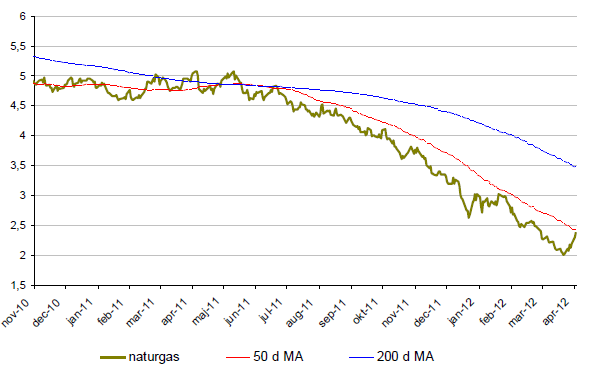 - Naturgas har under april månad utvecklats väl. För månaden upp ca 6 %.