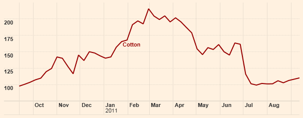 Bomull var förra årets vinnare på råvarumarknaden, vilket lockade tills stora spekulativa intressen till dess att priset nådde en topp under första kvartalet 2011. Sedan dess har ett ökat utbud och en högre konkurrens lett till att priserna svalnat.