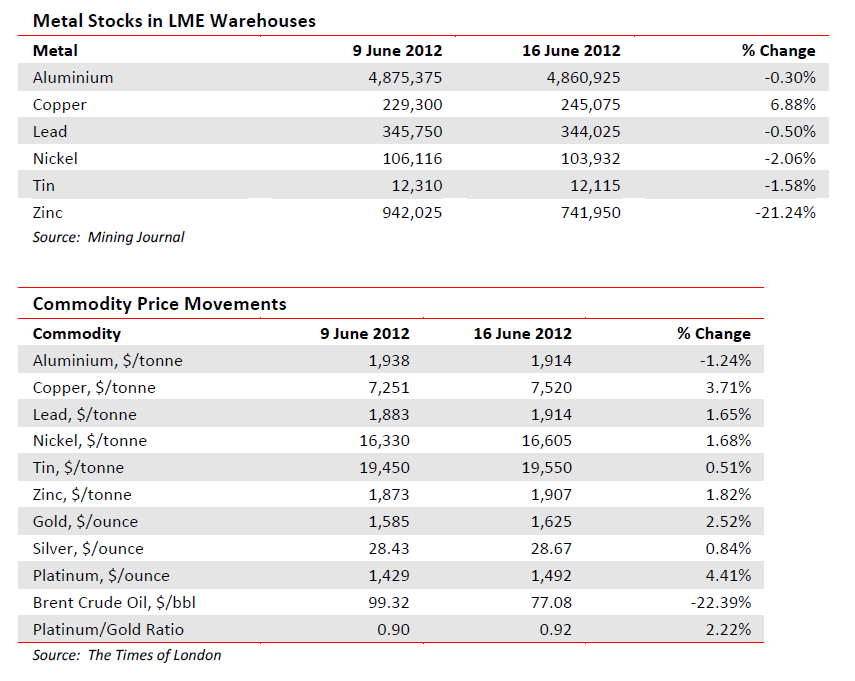 Whilst warehouse stocks scarcely stirred, prices for choice moved up, not much, but up. The involved producers all talked a good game. Rio Tinto said we shall face a supply deficit in aluminium in 2013. Alcoa says we are going to make car bodies out of that lightweight metal. Barclays Bank says commodity prices are in ‘no mans land’. S&P says there are rough times ahead for nickel and zinc. Who to believe and does it matter? Good thing it is not serious. Aluminium: just to remind, the world’s largest producers are: