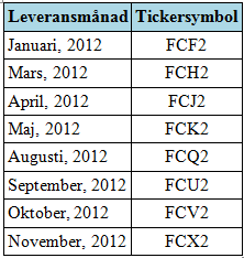 *2 avser årtalet, vilket betyder att tickern FCF2 avser leverans av ungnöt i januari 2012.