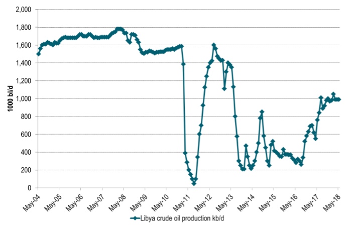 Ch3. Libya’s crude oil production may move down to around 0.5 m bl/d as General Haftar has handed the oil assets in the east to the authorities in Benghazi which are not recognized by the international community