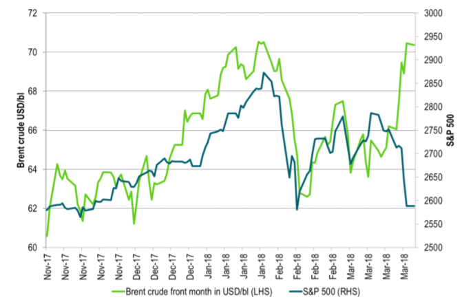 Price action: Brent jumps while equities fall as Venezuela and Iran supply risk increases on John Bolton