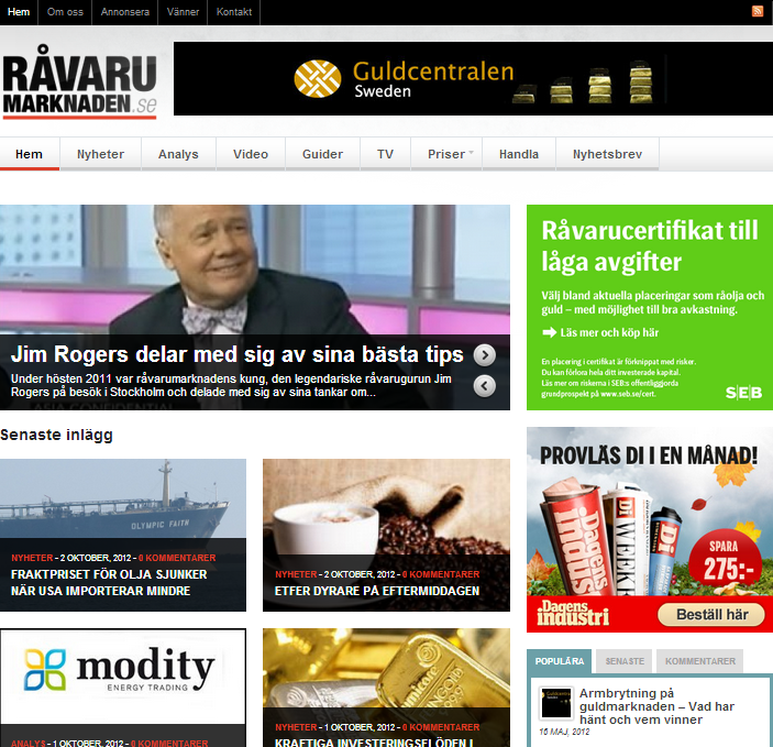 Vi erbjuder möjligheten att annonsera på Råvarumarknaden.se. Annonsmaterialet skall vara relevant och av intresse för våra läsare och besökare.