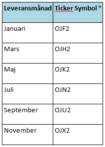 *2 avser årtalet, vilket betyder att tickern OJF2 avser leverans av frusen apelsinjuice i januari 2012.
