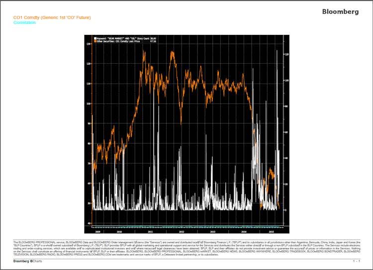 When the number of headlines about oil entering a bear market rises substantially, the price has a tendency to bottom, at least temporary. As the old saying goes “when hitting the cover page the trend is already mature”…………