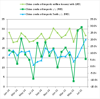 China crude oil imports down in August after record imports in July