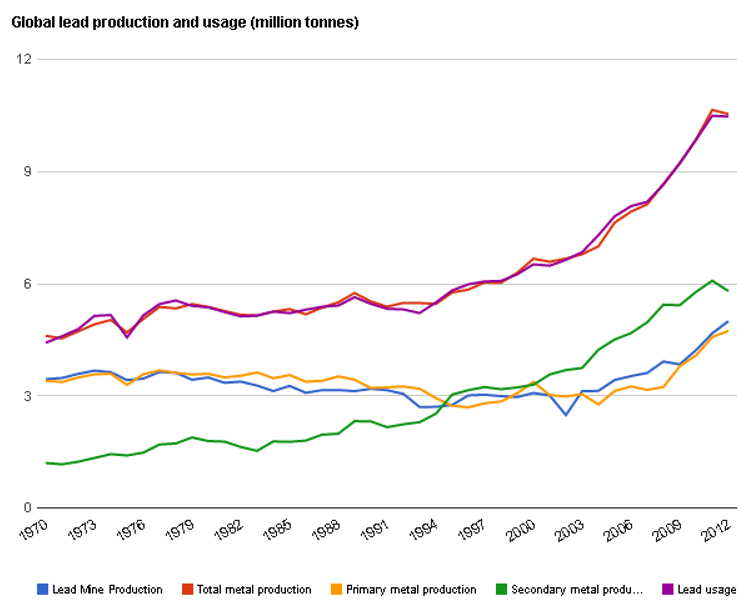 Trots ökade insatser från olika lagstiftande organ för att minska användning av bly ökar både produktion och konsumtion i världen. En allmän industrialiseringstillväxt på tillväxtmarknaderna betyder samma sak för bly som för andra metaller och med råvaror i allmänhet.