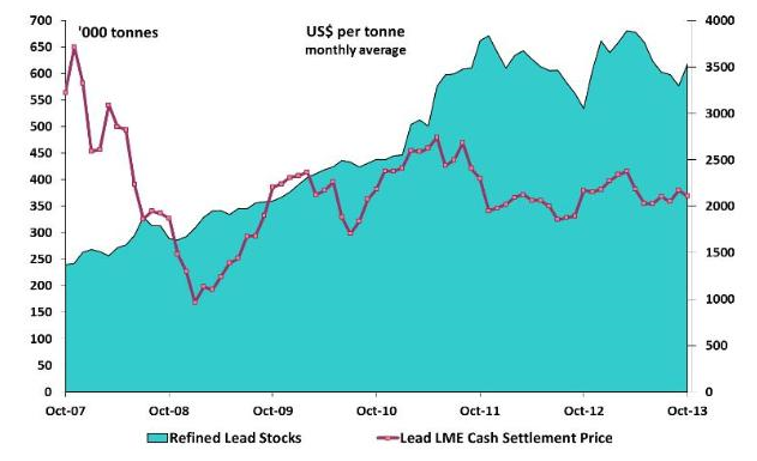 Under hösten 2014 ser vi att det fortfarande är Kina som är det land som har störst betydelse för priset på bly. Priset på basmetaller, inte bara det på bly, föll på grund av kinesisk pessimism, denna gång baserat på bedömningar om tillväxten i landets penningmängd. Handlarna i Shanghai är baissade, något som sätter sina spår också hos råvaruhandlarna i London där utförsäljningarna accelererar. Bly är en av de metaller som drabbats hårdast.