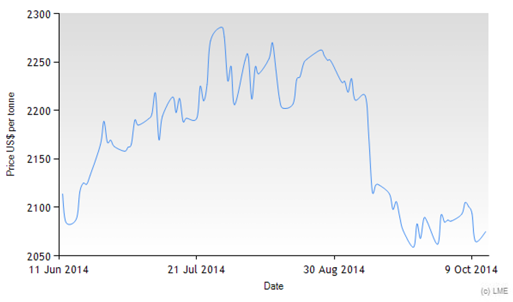 Under hösten 2014 ser vi att det fortfarande är Kina som är det land som har störst betydelse för priset på bly. Priset på basmetaller, inte bara det på bly, föll på grund av kinesisk pessimism, denna gång baserat på bedömningar om tillväxten i landets penningmängd. Handlarna i Shanghai är baissade, något som sätter sina spår också hos råvaruhandlarna i London där utförsäljningarna accelererar. Bly är en av de metaller som drabbats hårdast.
