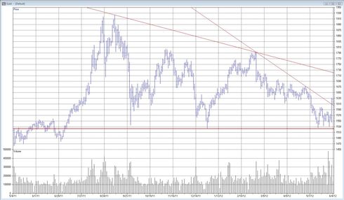 För det tre år gamla stödet förmådde inte längre att hålla emot i nedgångarna. 106 USD/fat bröts och därmed var hoppet om uppgångar borta. Det var många som snabbt insåg detta. I mitten av maj bröts nämligen stödet (se dagsdiagrammet) och nedgången accelererade ytterligare. Så sent som igår, den 18 juni, fick vi en ny lågpunkt på 95,38 USD/fat.