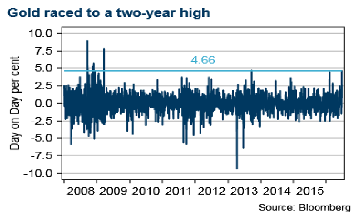 Midsommarafton bjöd på ett ovanligt skådespel när valurnorna räknats i Storbritannien. Lämna-sidans seger med 52% mot 48% startade en reaktion på finansiella marknader som bitvis inte skådats sedan Lehman försattes i konkurs i september 2008. Guld steg som mest 8% under fredagen samtidigt som industriella råvaror som olja tappade över 6%.