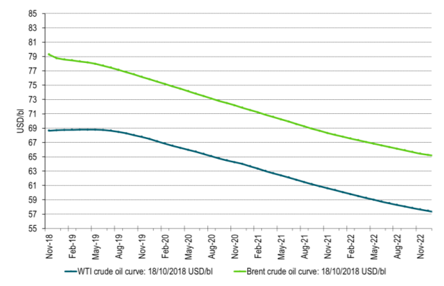 Contango in the WTI curve. Weaker Brent crude curve structure as WTI curve weakness is rubbing off on the Brent curve structure through spread trades
