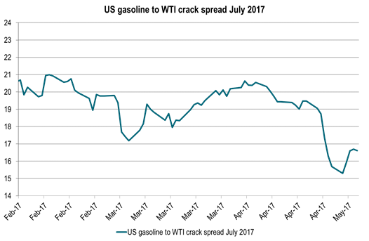 Another angel for the sell-off in crude oil is US gasoline. Looking at the sell-off in crude oil we can see that the sell-off has been preceded by a sell-off in gasoline. Gasoline and the driving season is normally a bullish element this time of year. Counter to normal we have instead had a sell-off in gasoline which has been feeding into a bearish pressure on crude oil as well. So weakening US gasoline prices clearly are partly to blame for the latest crude sell-off.
