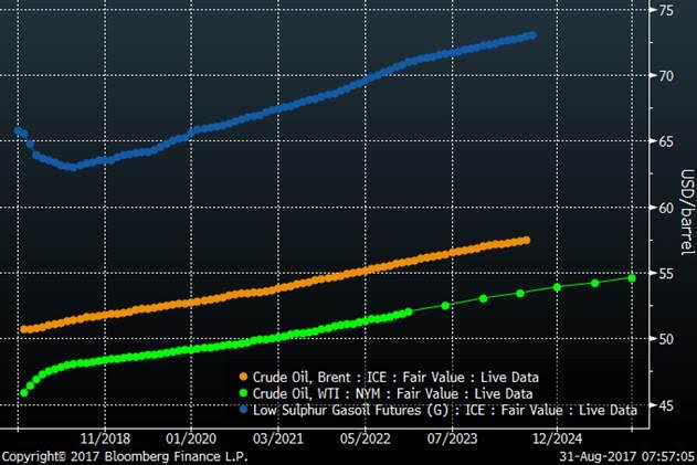 While product cracks have skyrocketed for the October contracts there is little to be seen in contracts one year down the road. How short lived the effect will be depends on how serious the damages are on pipelines, ports and refineries. A picture which probably will be clearer during the coming week.