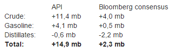 US oil inventories. Marker in organge is if API indicative numbers last night is what comes out of US data today at 16.30 CET.
