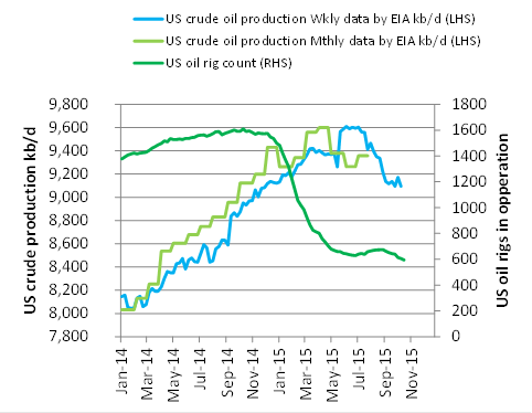 Reduced IMF growth outlook for 2016 (from 3.8% to 3.6%) leads to reduced oil demand growth for 2016. Strong demand growth did however continue into 3Q15.